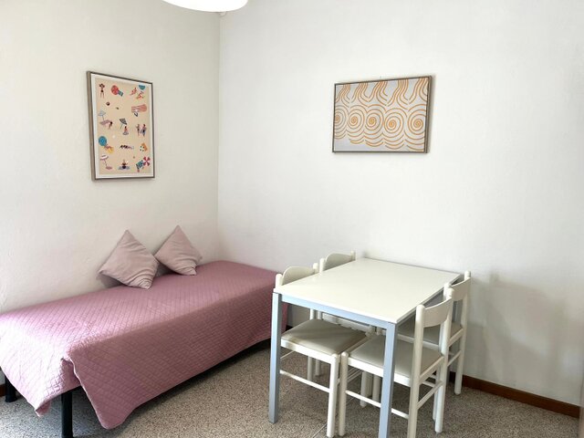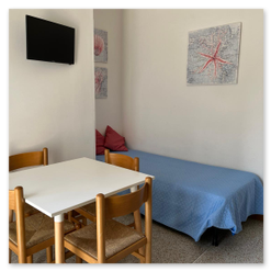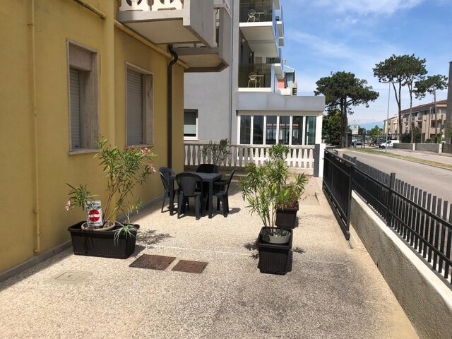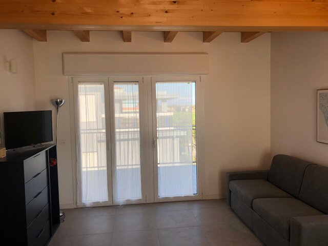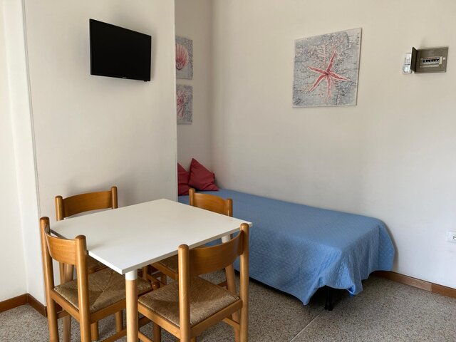L'appartamento bilocale "large" al piano terra è composto da una camera matrimoniale, da un soggiorno / cucina con divano letto singolo e letto singolo a scomparsa e dal bagno con doccia. Questo bilocale è fornito di climatizzatore e di televisore a schermo piatto. Inoltre il residence è dotato di una lavanderia a disposizione gratuita degli ospiti. Agli ospiti viene inoltre fornito un abbonamento per i parcheggi a pagamento del Comune di Caorle ( zone blu ) che permette di posteggiare la propria auto a pochi metri dal residence.