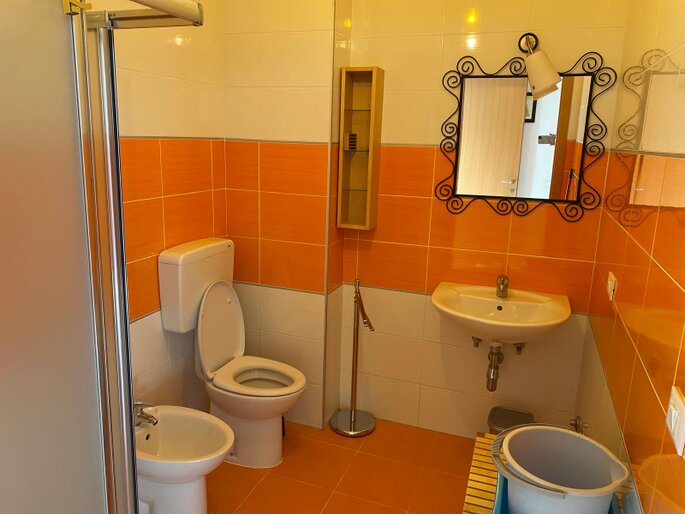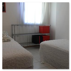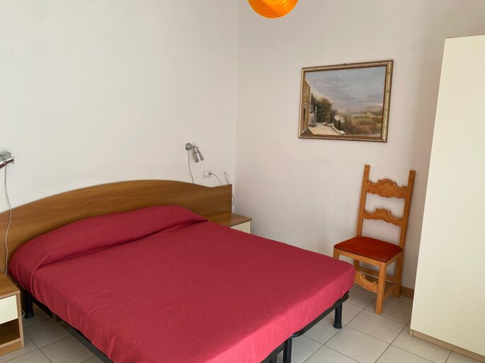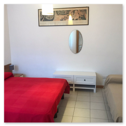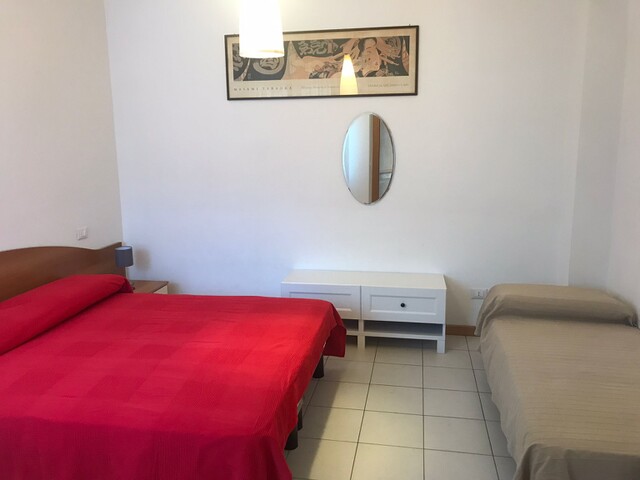 Trivano composto da una ampia camera matrimoniale, una cameretta con due letti singoli, soggiorno con angolo cottura e divano letto doppio, bagno con box doccia e balcone con accesso dalla camera matrimoniale.