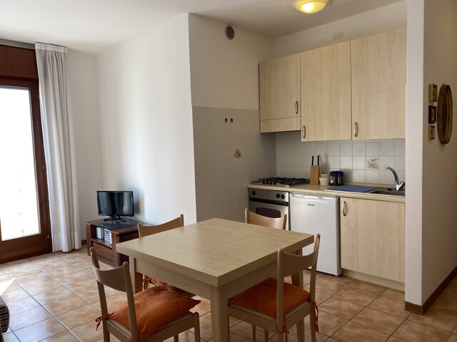 Appartamento bilocale al 2° piano di una palazzina ristrutturata recentemente e dotata di ascensore al mezzanino, la posizione è molto interessante, a soli 150 mt dalla spiaggia di Ponente e a 5 minuti a piedi dal centro storico di Caorle.
