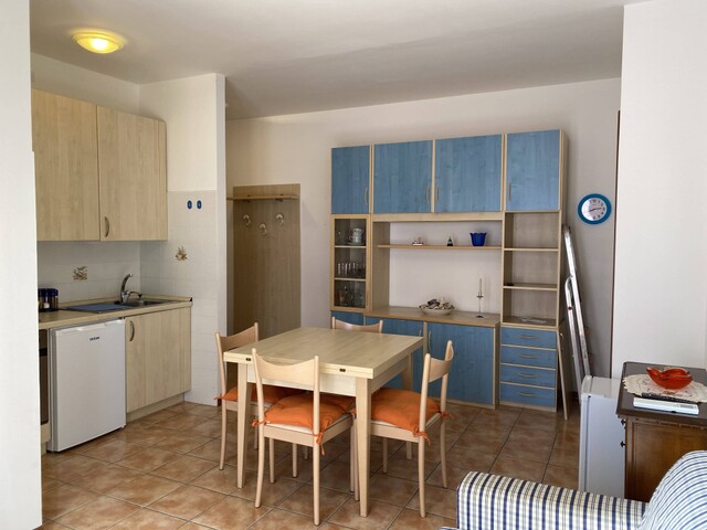 E' composto da una camera matrimoniale, soggiorno con angolo cottura e divano letto doppio, bagno con box doccia e due balconi con accesso dal soggiorno e dalla camera da letto.