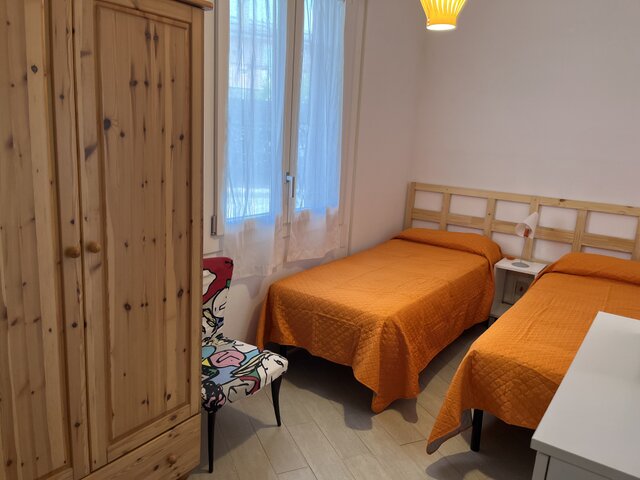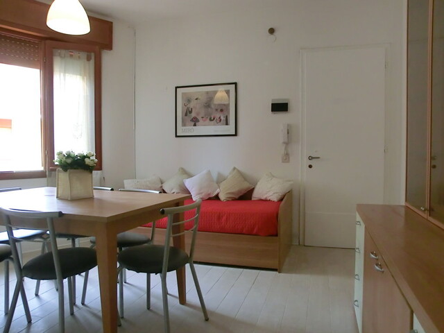 Moderno trivano composto da una camera matrimoniale molto grande con terzo letto, seconda camera matrimoniale o doppia, soggiorno con divano letto, nuovo cucinino separato e bagno con box doccia. Appartamento fornito di lavatrice, climatizzatore, connessione Wi-Fi, zanzariere, televisore, forno microonde, cassetta di sicurezza, posto macchina privato e coperto. Agli ospiti vengono messe a disposizione gratuitamente quattro biciclette.