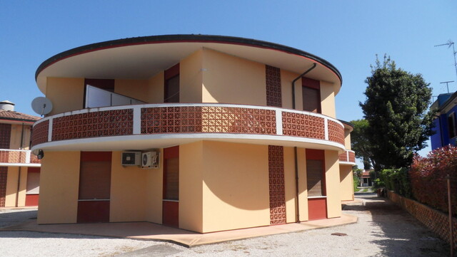 Appartamento trilocale al piano terra di un residence situato a 350 metri dalla spiaggia di Ponente a Caorle, nella tranquilla e verdeggiante zona del Villaggio dell'Orologio.